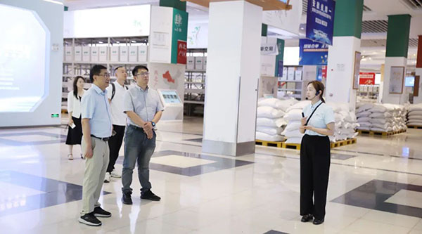 在參觀神農(nóng)倉(cāng)時(shí),工作人員詳細(xì)介紹交易中心創(chuàng)新打造的神農(nóng)倉(cāng),主要依據(jù)麥德龍倉(cāng)儲(chǔ)式商超理念來(lái)實(shí)現(xiàn)市場(chǎng)升級(jí)換代,完成市場(chǎng)產(chǎn)地化,依托交易中心“N+50”全國(guó)資源布局體系,匯聚全國(guó)藥材主產(chǎn)地一手貨源??疾靾F(tuán)一行駐足在智慧交易屏前,詳細(xì)了解神農(nóng)倉(cāng)線上掛網(wǎng)、線下展示、遠(yuǎn)程視頻實(shí)時(shí)看貨的交易模式,并查看了黃山產(chǎn)區(qū)交易藥材,對(duì)交易中心打造的線上線下相結(jié)合的中藥材市場(chǎng)流通體系給予高度認(rèn)可。